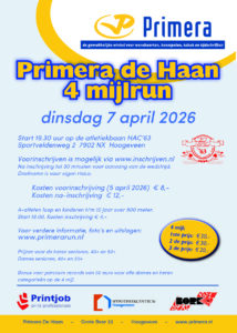 Doe dan de primerarun op dinsdag 7 april 2026. De 4 mijl is een goede indicatie voor de 5 mijl van de cascaderun.